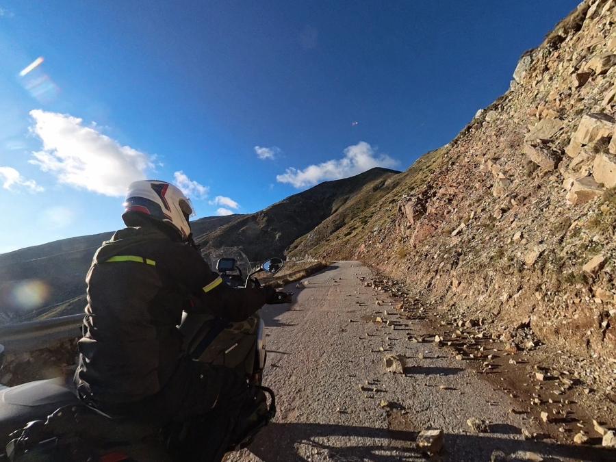 The Baros Pass (highest paved pass in Greece) requires specific attention. In early May, snow melt restricts usable road width to approximately one motorcycle width at the summit. Later in the season, the pass is clear but remains exposed to weather that can change visibility and grip rapidly.