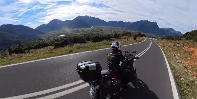 11-day self-guided motorcycle tour throgh Pelion, Central and Northwest Greece. 2,200 km covering UNESCO sites, mountain passes, and coastal routes. Includes 10 nights accommodation, motorcycle rental with luggage equipment, GPS navigation with pre-loaded routes, and insurance with excess. Two optional rest days. Flexible departure dates. Advanced difficulty. Prices from €2140 per rider.